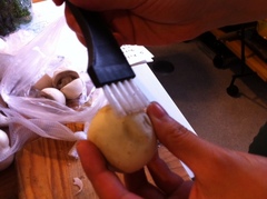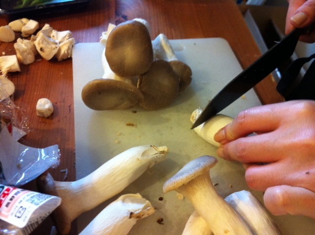 マッシュルームのそうじは、 フィンランドみやげの専用ナイフで。 エリンギも大量!