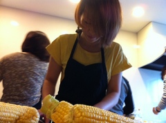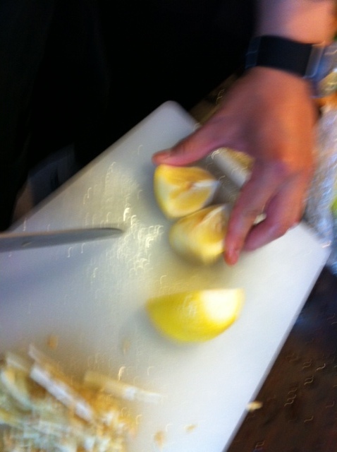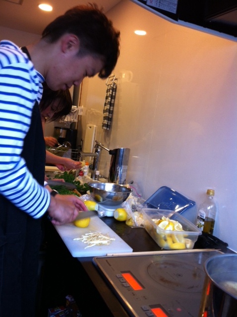 BBQ準備隊には男子もいます。 お肉に添えるレモンを切ってます。 バイトで料理5年やったんだって! 手際がいいと思った。