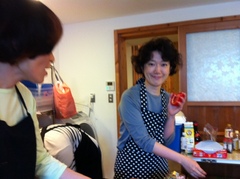弥絵さんが調理する姿はちょっと珍しいかも。 「身体のでっかい弟たちに、 しょちゅう食べさせてたんで、 なんとか一通り覚えたんですよ。 量を作るのは得意かも」 おお、頼もしい!