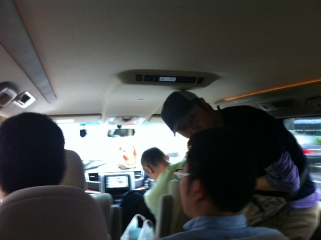 早番班といいつつ、 おっくんが酔い止めクッションを 忘れたり それぞれが勝手に買物に走ったりして 出発が遅れてしまいました。 音也の運転するオトヤカー、 助手席におっくんを配置、 順平、ベイ、永田、茂木、 元木、菅野を乗せて 安全運転でまいります。