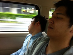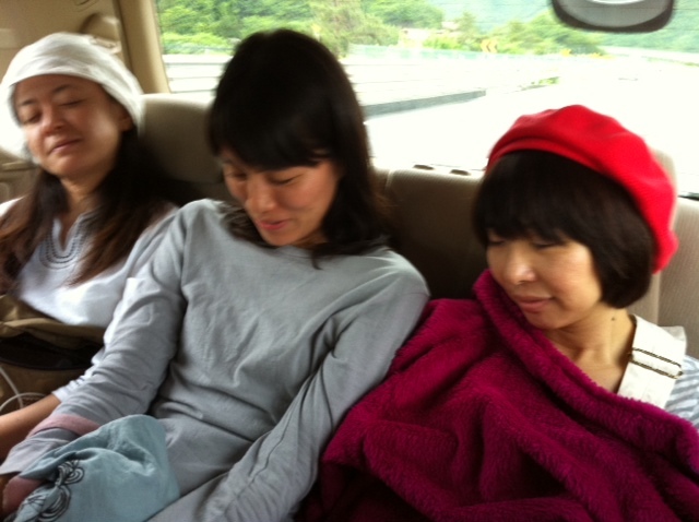ちょっと寝とこうぜ、 ということで 仮眠タイムに入りましたが、 この中でほんとに寝てるのは ひとりだけです。