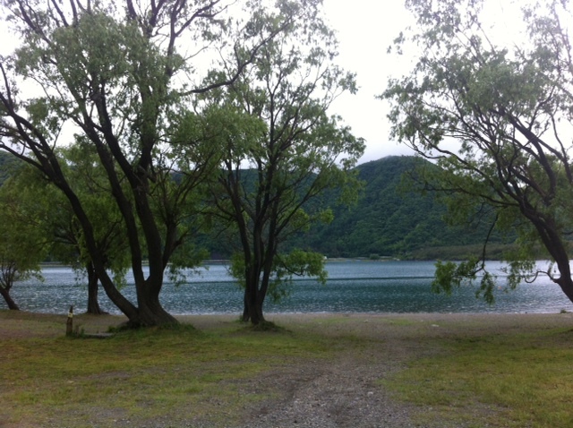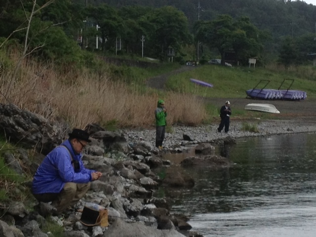 みると、湖に入っている山下。 長靴だったんだっけなあ。 と思っていると、 笑い声が聞こえます。 遠くでニコニコ、わはわは 笑っています。 真ん中の緑色が山下です。