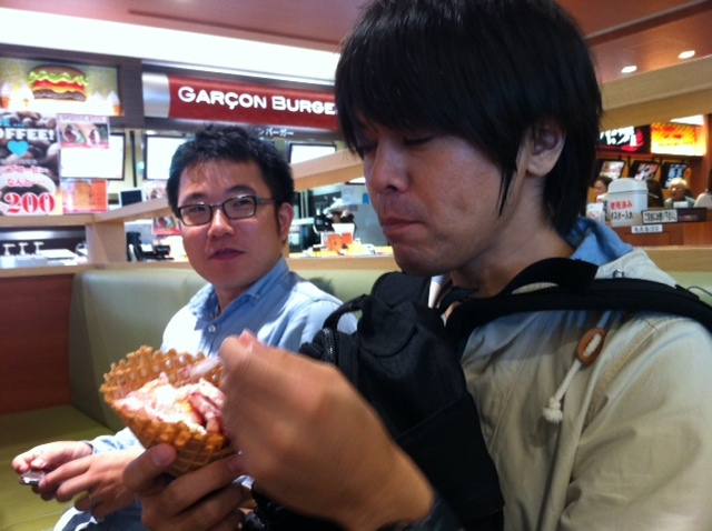 ラーメン、モダン焼き、 スタミナ丼、チャーハンなどの お食事をよそに 甘味なひとたち。 アイスクリームと あんぱんで 腹をふくらますのです!