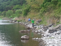 釣りチームです。 とても静かです。 聞こえる音といえば、 うぐいすの声がいちばん大きいくらかいで。