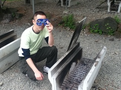 天候はあいかわらず不安定ですが、 着いた瞬間、かなりの晴れ間が! そして、晴れたとみるや、 弊社の宇宙好きチームの一員、 おっくんが荷物から ごそごそと何かを‥‥。