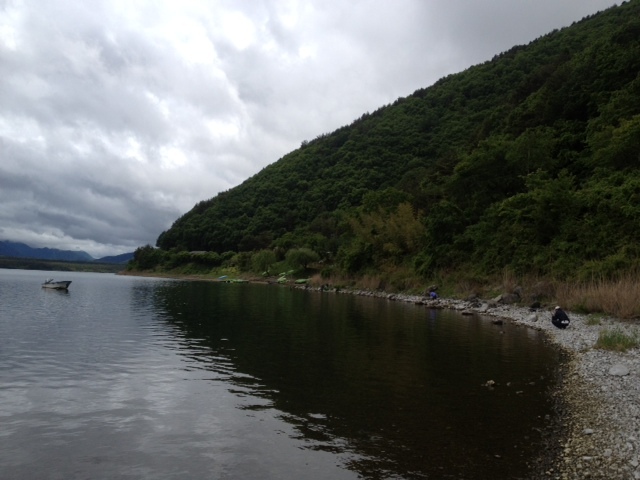 奇跡的に雨の降りやんだ、西湖。 のどかです。 釣りをしていることを 忘れます。
