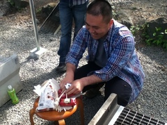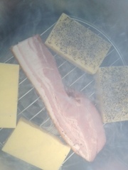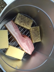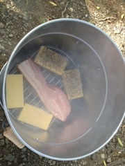昨日、予習したとおりに ひとつめを燻製開始しました。