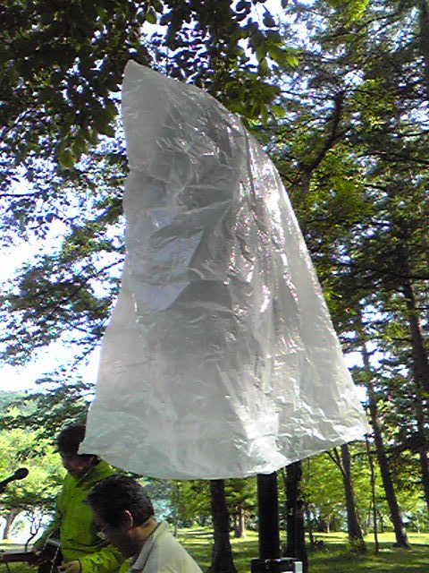 恋歌ライブでのスピーカーは 雨避けのビニールが。