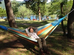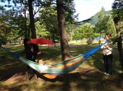 南国の王様風に シャボン玉係と 日傘係をしたがえてます。