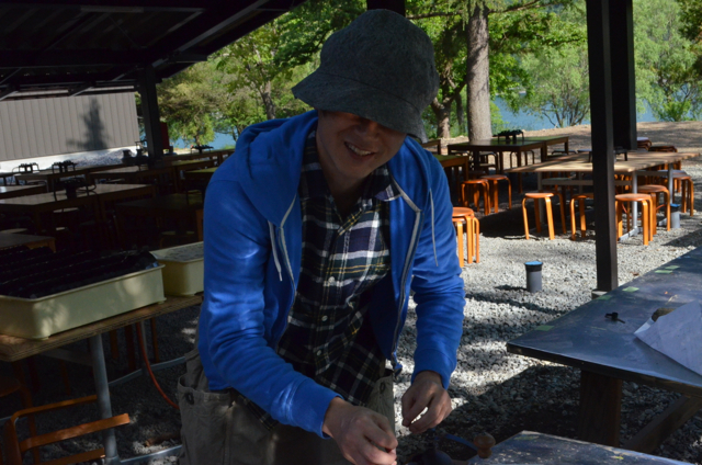 こちら燻製屋。 段ボールを加工するための カッターを忘れてきました! 絶対ふくろに入れたと思ったのに。