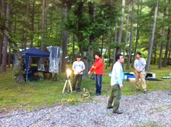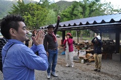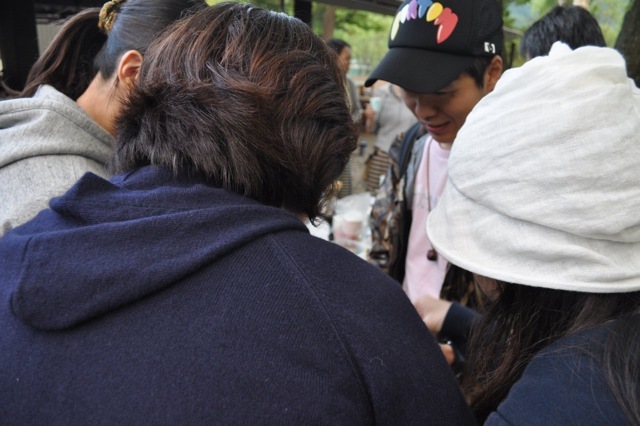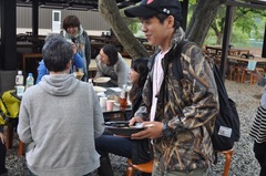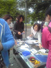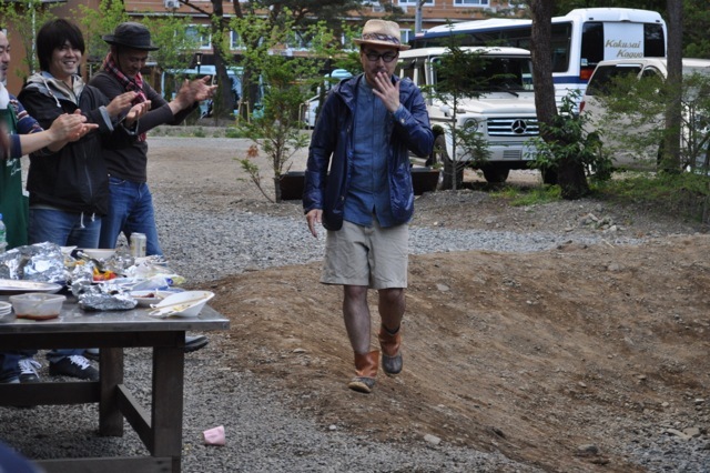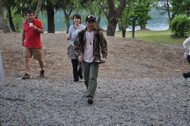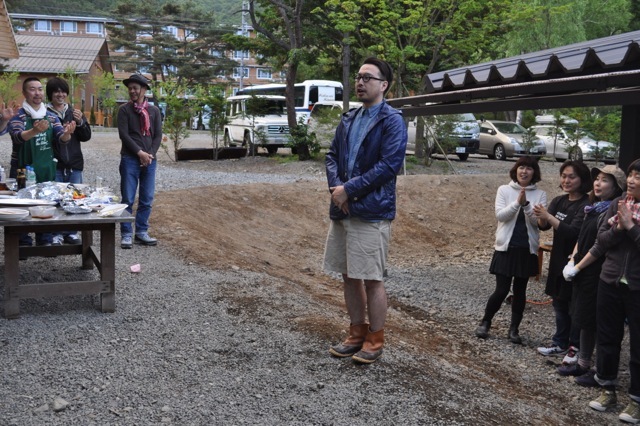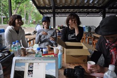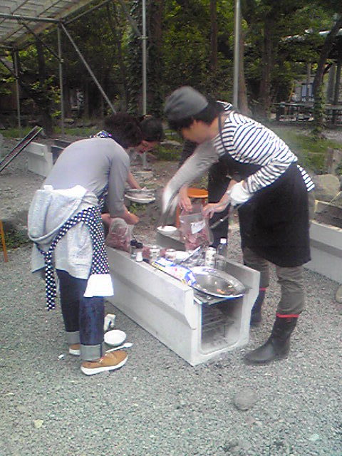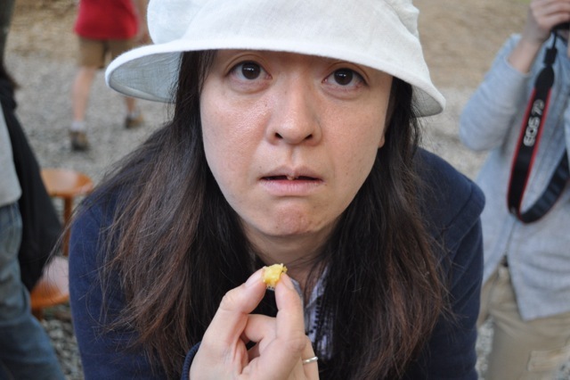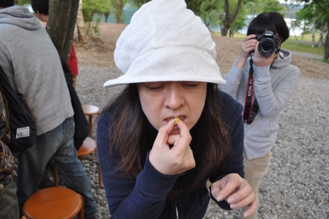 みなが群がり、 スモークされたチーズを試食。 「わぁっ!」と歓声が‥‥あがらないね。 かといって、不評でもない。