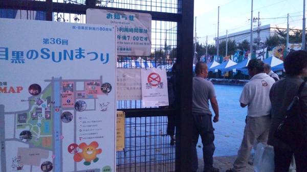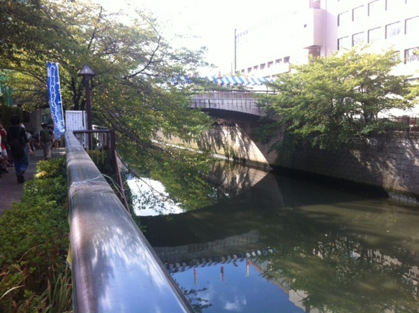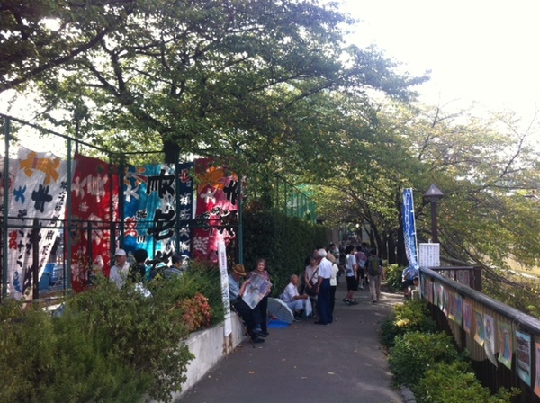 会場の田道公園は目黒川にめんした、 綺麗なところにあります。 川と公園の間の道には、 え!もう並んでる! 会場までまだまだ時間があるのに。 スゴイなー。