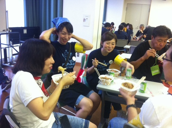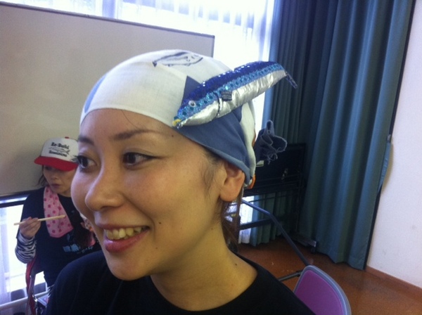 ほぼ日乗組員も揃いました! 働く前にまずは腹ごしらえをしないと、ね。 ということで朝食中です。 朝ごはんを嬉しそうに食べる 乗組員達、 食べた分だけ働くんだぞ! さゆみちゃんが頭につけている さんまバッジかわいいなー。 ほしいなー。