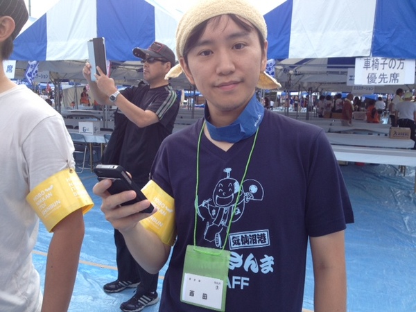 本日、朝からテキスト中継を 担当してまいります、山下と菅野です。 黄色い「ほぼ日」の腕章をつけています、 いらしたら、声をかけてくださいね。 (テキスト中継の目印のベレー帽は いまのところかなり目立ってます) 合い言葉は、そうだなぁー、 「さんまにちは〜」でどうでしょう。 さんまにちは〜さんまにちは〜