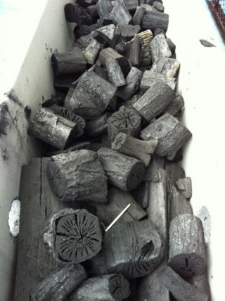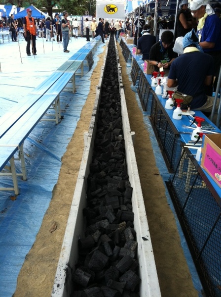 U字溝に並ぶ、炭ーーーーーー。 ここでじゅうじゅう焼くんです!