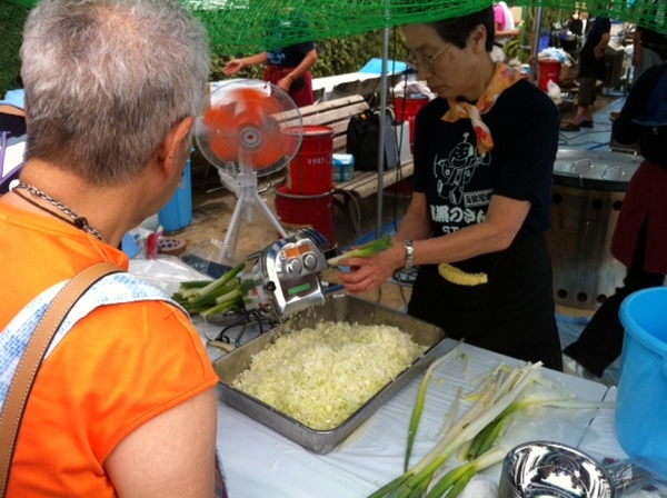すり身汁班の強力な助っ人です。 ネギがどんどんみじん切りや 輪切りにされていきます。