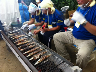 もくもくしてる! と思って近づいたら、 早くもさんま焼きがはじまっていました。 うしょー、おいしそう、なんじゃ、こりゃー。