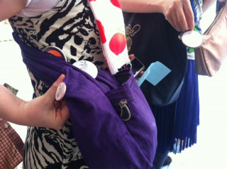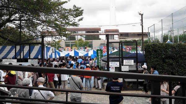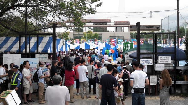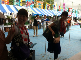 お客さまの入場がはじまった、 と思ったら、いきなり 「スガノさーん」と声を かけていただきました。 おお、それは、さんま寄席のバッジ!! 「わたしたち、さんま寄席で 知り合ったんです」 すごい! ていうか、こんな、いちばんのりに近い 順番で? 何時から並んでたんですか。 わー、うれしい、ありがとうございます。 おいしいさんま、食べてってくださいね! さんまにちは〜