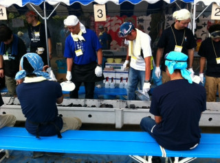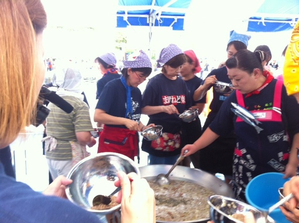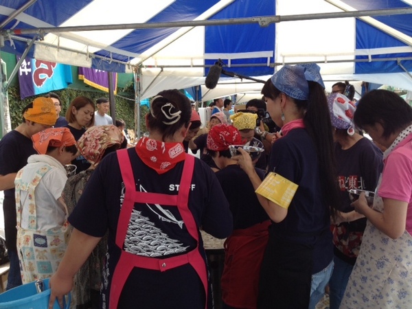 こちら、さんまのすり身汁チームです。 「気仙沼のほぼ日」のサユミちゃんが がんばっております。