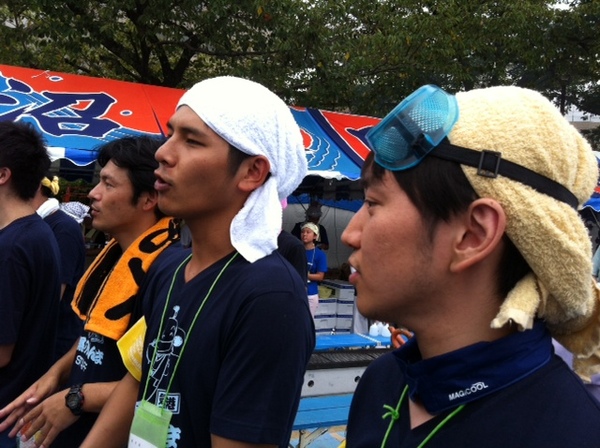 このふたりは焼き手なので歌う側です。 けっこう大声で歌っています。