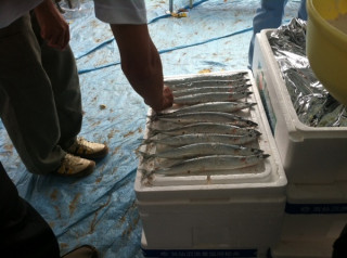さあさあ、さんまの塩振りが はじまったぁ! ぴかぴかの気仙沼のさんまです。 きれいです。
