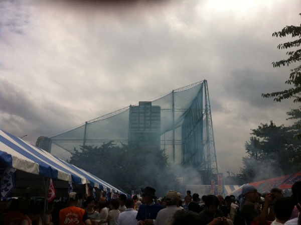 あ、同僚が、広場の端っこで泣いてる。 秋だね。 わたしたちの想い、おいしいさんまとともに、 飛んでいけ。