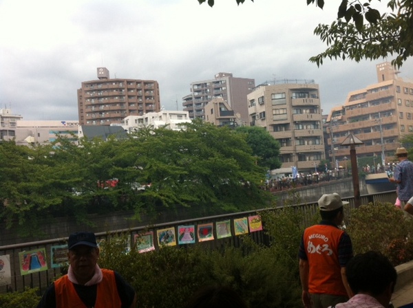 会場から外を見てみました。 川のむこうに列が あるような気がする。