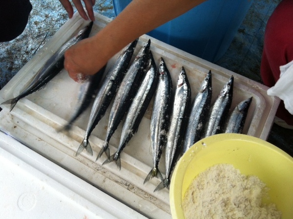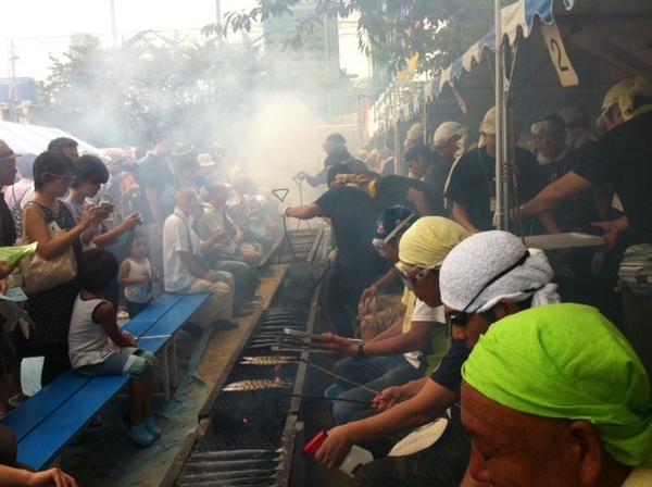 現在どれくらいのさんまを焼いたのか うかがいました。 2000匹くらいだそうです。 ということは、もうすぐ折り返し。