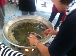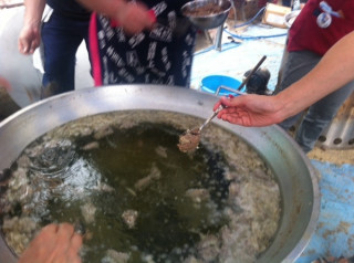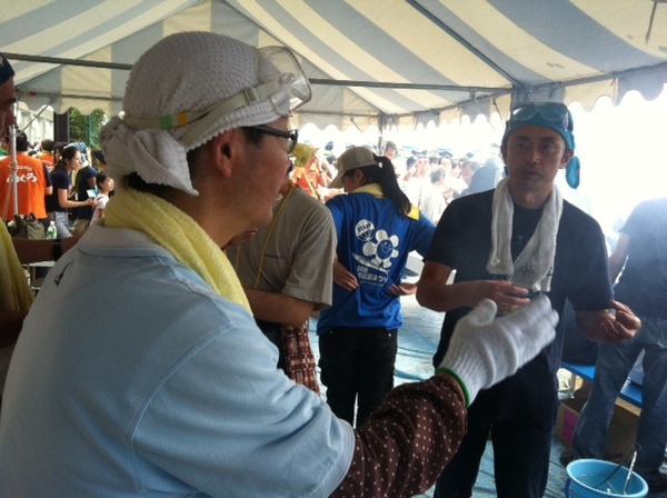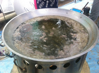 でっかいボイラーで お湯がガンガン焚かれている つみれ汁班に 冷えピタが投入されました。
