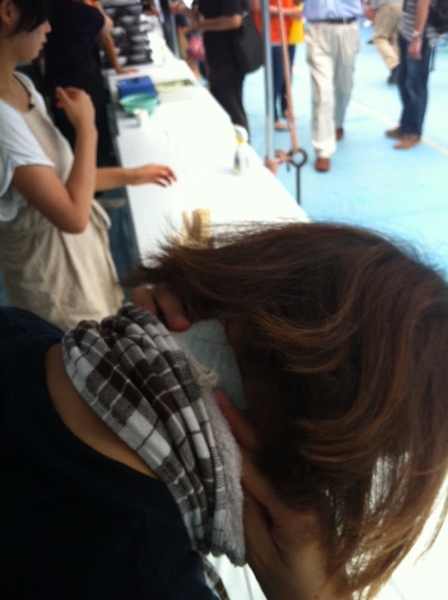 バックヤードで、 気仙沼のかたが目黒のスタッフに さんまの焼き方をレクチャーする 場面に遭遇しました。