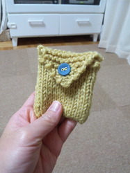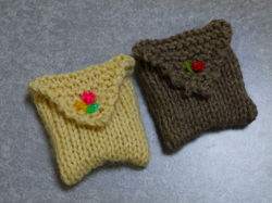 永田さんと山下さんの例にならって、 出来上がったポーチを 妹と交換する約束をしたので、 自分としては 最大限の丁寧さで編みました。 それでも一つ目は目がゆるゆるで 気に入らなかったので自分用とし、 二つ目は心もちきつめに編んでみました。 大きさが二まわりくらい違います。