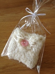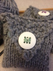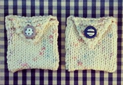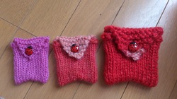 初の棒針編み作品に苦戦、 土曜日午後から賞味8時間、 やっと二つ出来上がりました。