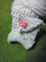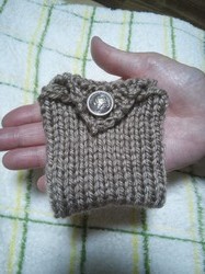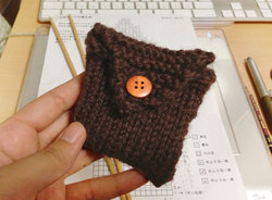100均にあったくるみボタンが 可愛かったのでつけてみました。 あちこちガタガタだけど 人生初の編み物完成品なので それだけで愛しいです。 先に手袋キットを 購入・挑戦しているのですが 未だ完成には至らないので、 こっちが人生初! それにしても改めて 目薬ポーチ連載本当にうれしかったです! 連載で一番うれしかったのは、 「表目を編むときは糸をこっち側、 裏目編むときにはこっち側」 という糸のさばき方の説明があったこと。 これをまったく理解しないまま 勢いだけで購入した 手袋キットに挑んでいたので、 私の編地はぼこぼこした 毛玉が絡み合って 並んでいるだけだったのです。 それはまるでコモリガエルの 背中のよう……。 おかしいな? と思ってはいたけど恥ずかしながら 何がおかしいのかすら分かっておらず 勢いだけで進めていました。 糸をちゃんと移動させたら 正常な編み目が誕生して感動! 今は解いて最初から編み直し中です。 楽しいです。 例え編んだ結果が コモリガエル状でも、 やってる最中は楽しいだけでした。 気づくと編みながら 何時間も経ってて 自分でびっくりしています。 冬のうちの完成を目指して頑張りたいです。