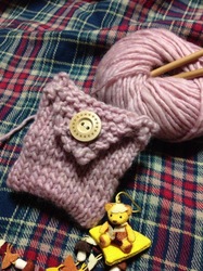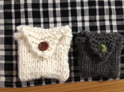 今まではフランス式で 編んでいたのですが、 やってみるとアメリカ式のほうが きっちりと編める気がします。 でも、以前は マフラーやミトン、セーターまで 編んだことがあったはずなのに、 完成した目薬ポーチはご覧の通り! 手袋にとりかかる前に、 目薬ポーチにもう一度挑戦中です。
