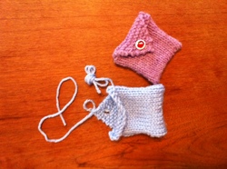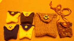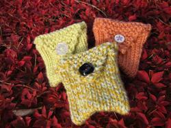 ポーチは結局、 みっつできあがりました。 編めてうれしい! という気持ちがでたのだと思います。 色などのイメージは、 レトロ&ポップで 大人っぽい感じを目指しています。 気軽に使えるように、 アクリル毛糸を使ってみました (我が家の猫はウール 製品を見つけると、 口にくわえて走り出してしまいます)。 できあがったポーチは 散歩に連れて行き、 きれいに紅葉した 垣根にのせて撮影してきました。
