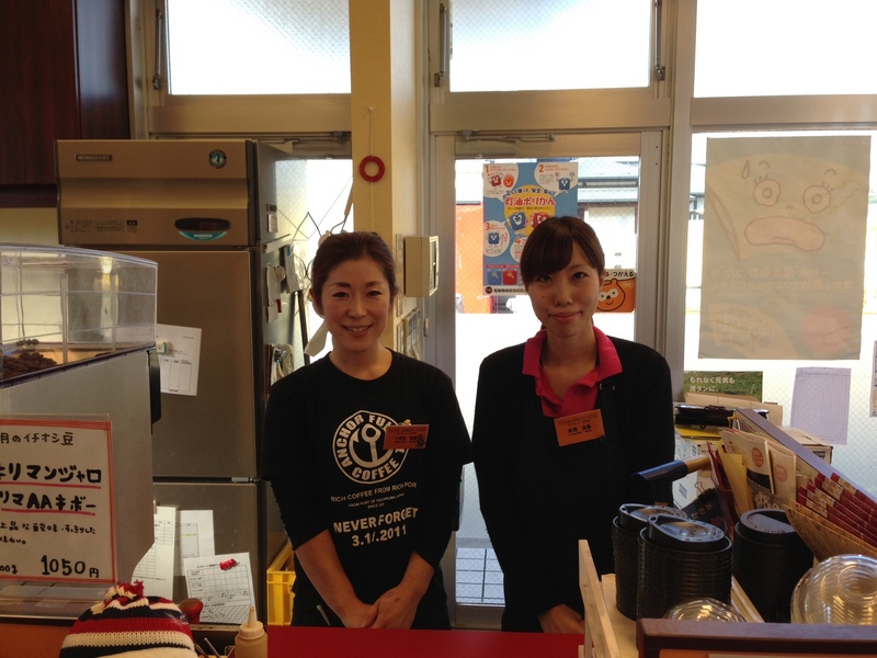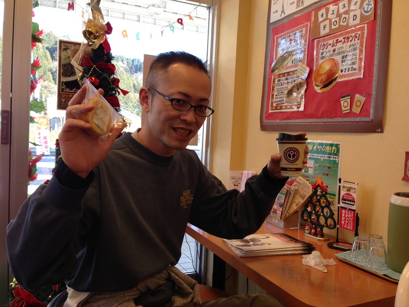 あったかいコーヒーと チョコチャンクで エネルギーを注入したわれわれ、 再び気仙沼へ向け走ります。