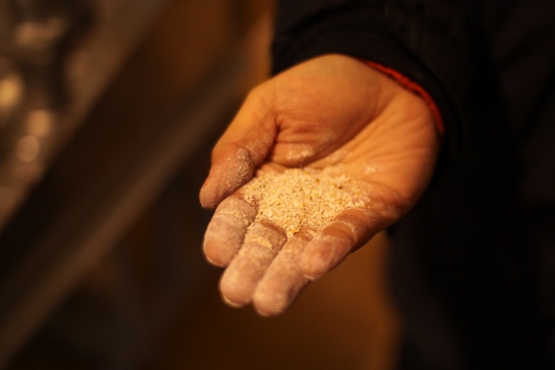 ここは、小麦や大豆などの原料を 細かく砕いたりなど、 材料として、ととのえる工場の内部です。