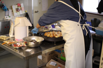 さっそく 研究所の中へ足を踏み入れいると‥‥ いきなり、 たこ焼きが「研究」されているぞ! |
