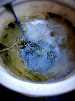 「メダカの鉢」に氷がはり、