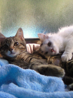 顔つきも毛並みも違いますが、姉妹です。