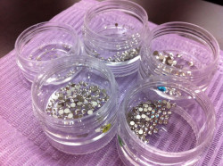 基礎はだいたいわかったから、さっそくやってみるにゃー。みてください、このスワロフスキー。わたくし、三度の飯よりスワロフスキーが大好き。みてるだけでしあわせだにゃん。まずは、ネコ型のプレートをつかって、手軽なデコから、やってみるにゃん。
