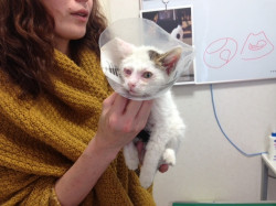 友森さんがいつもお世話になってるハナ動物病院さんにやってきました。カタクリンと、カタメのミケオたちは、病気がないかここで血液検査をしました。無事、陰性!問題なし!やったね。今日は帰って洗われます。早ければ次次回(3月10日)の譲渡会から、参加できそうにゃのよ!