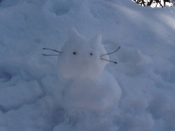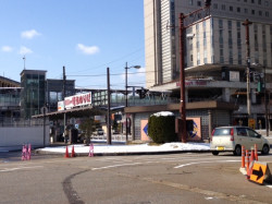1つめの目的地、富山県の高岡駅に到着!さきほどの雪景色ほどではないですが、この町も少し雪が積もっています。私はここで、あるものを待っています。あと10分くらいかな。待っているあいだにねこダルマづくり。
