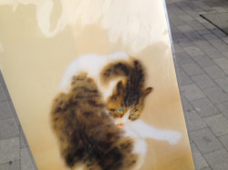 いくつも有名な猫の絵を所蔵している、山種美術館。ただ、事前に聞いたところ、今は展示されてないとのことで、今日はポストカード狙いでやってきました。写真はそのひとつ、班猫(はんびょう)。竹内栖鳳作、重要文化財でございにゃす。かわええのう。