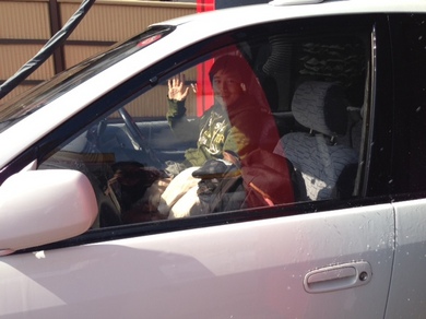 みんながコーヒーをのんでいる間に西田くんが洗車をしていました。ガソリンスタンド併設のアンカーコーヒーだからできることだけど、なんてすばらしい!ピカピカの車で、いざ、気仙沼!
