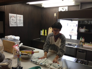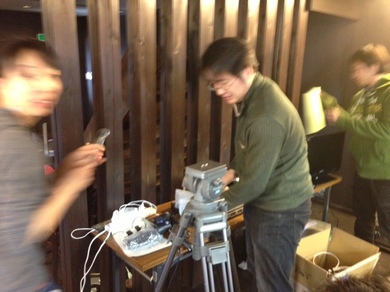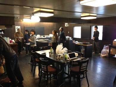 とらやのみなさんです。ふだん作っている工場となにかと勝手が違うので、ここにある火力、鍋、炊飯器などで、どうなるか、議論中。たゆまぬ探究心です。