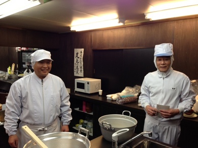 左が最高技術者の染谷さん、右があん作りエキスパートの鵜沢さん。白衣。場の空気が引き締まります。