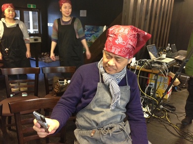 あんこ大統領が会場に到着しました。「こんなにいい場所があって ほんとうによかった。 なんにもないところから見ていたからさ」しみじみ、感慨深いです。今日の会場は斉吉商店さんの2階にある「ばっぱの台所」です。