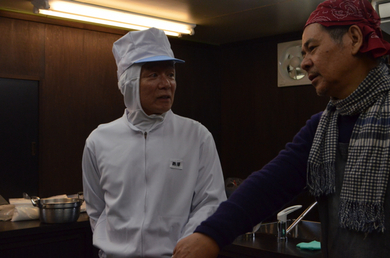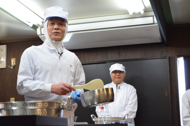イトイが大統領ならば、とらやのみなさんは神です。神々のみなさま、左から最高技術者の染谷さん、あんこのスペシャリスト鵜澤さん、そして製造を担当していらっしゃる本田さんです。