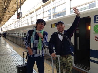 われわれ、ただいま新幹線で移動中です。